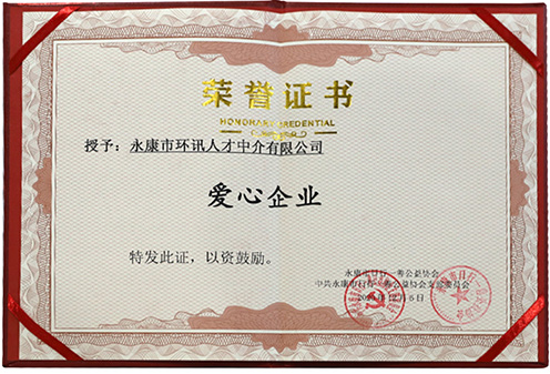 返回首頁 《企業(yè)營業(yè)執(zhí)照》 《人力資源服務(wù)許可證》 《金華人力資源服務(wù)機(jī)構(gòu)年度評價》 《永康優(yōu)秀民營人才中介》 《愛心企業(yè)》